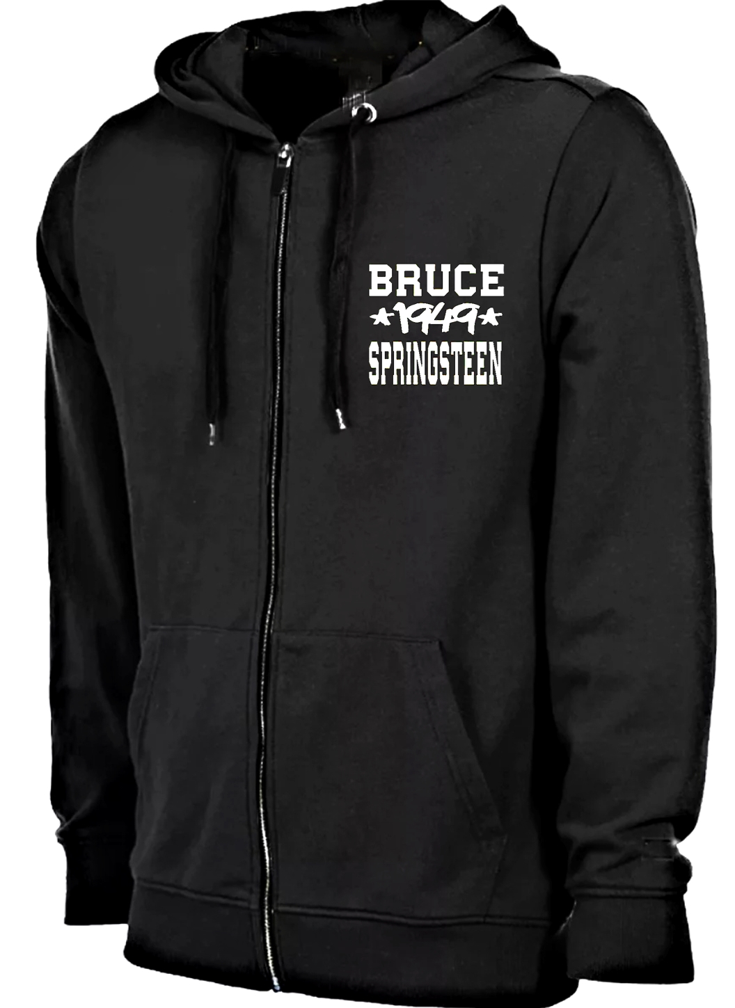 Sudadera con cremallera y capucha, algodón con frisa en su interior, «Bruce,1949, Springsteen». Corte unisex.